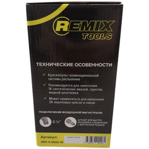 Краскопульт REMIX S-990G 1.5мм, верхний бачок, 600мл